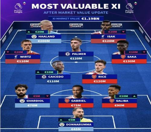 英超身價(jià)最貴陣容發(fā)布!伊薩克1億歐身價(jià)領(lǐng)銜前鋒維爾茨中場(chǎng)核心