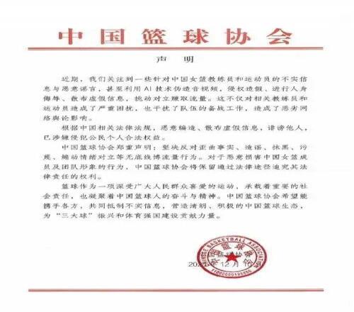 利用AI造謠“中國(guó)女籃”,兩男子被公安機(jī)關(guān)刑拘