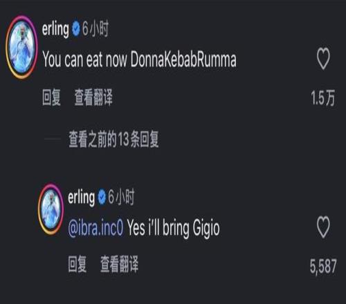 在這張照片中,哈蘭德也出現(xiàn)在一旁,但他并沒有錯(cuò)過調(diào)侃隊(duì)友的機(jī)會。哈蘭德在評論區(qū)幽默寫道:“現(xiàn)在可以放心去吃烤肉了。”