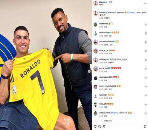 納尼在個(gè)人社媒發(fā)布了一張與C羅在利雅得勝利更衣室的合影,并寫道:“該去看看那些老朋友了。”