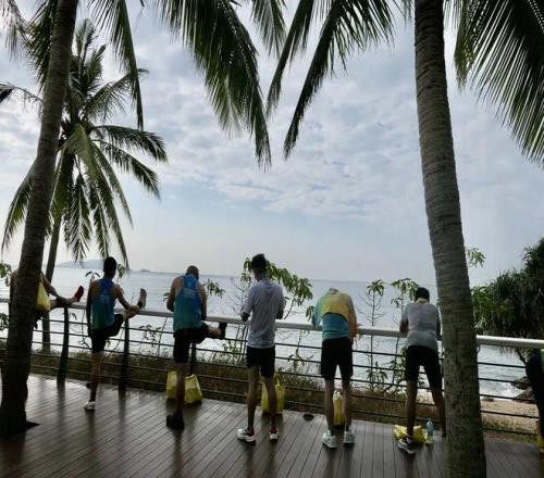 清晨六點,天色未亮,參加三亞馬拉松的跑者們已開始檢錄。大眾熟悉的劉畊宏從直播間來到起跑線前,帶領跑者和觀眾熱身。動感的節(jié)奏、充滿活力的舞步,驅散了現(xiàn)場的最后一絲困意。