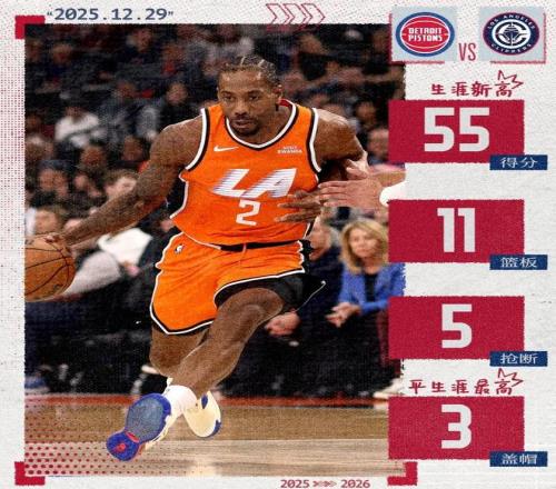 這場比賽發(fā)揮最出色的無疑就是倫納德,全場比賽出戰(zhàn)39分鐘,投籃26中17命中率65.4%,三分三分10中5命中率50%,罰球17中16,拿到55分11籃板2助攻5搶斷3蓋帽,真實命中率達到了讓人吃驚的92.2%,正負(fù)值+20。第三節(jié)他單節(jié)12中9+三分5中3拿到26分5籃板1搶斷1蓋帽,要知道第三節(jié)活塞全隊總共才得到27分,小卡為我們詮釋了何為一人打一隊,進入狀態(tài)的戰(zhàn)神卡無論是單防還是包夾,全都沒用。憑借本場比賽的出色發(fā)揮,倫納德創(chuàng)造了NBA歷史第一紀(jì)錄:據(jù)統(tǒng)計,小卡是NBA史上第一位單場至少砍下55分11籃板2助攻5搶斷3蓋帽,且命中5個三分球的球員。單場55分的得分不僅刷新了個人生涯單場最高得分紀(jì)錄,同時也追平了快船隊史最高得分紀(jì)錄,不得不說健康且認(rèn)真打球的小卡真強!