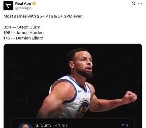 第二項(xiàng):生涯第354次單場(chǎng)至少砍下25分且命中5記三分,繼續(xù)穩(wěn)居NBA歷史第一,哈登以196次排在第二;