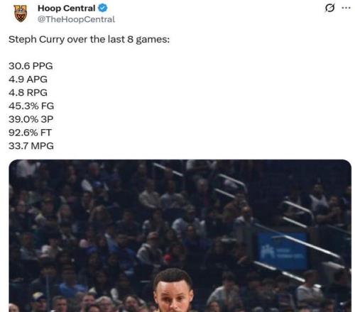 這也是庫(kù)里進(jìn)入12月以來(lái)好狀態(tài)的縮影,過(guò)去8場(chǎng)比賽庫(kù)里場(chǎng)均可以拿下30.6分4.8板4.9助,三項(xiàng)命中率為45.3%、39%、92.6%。