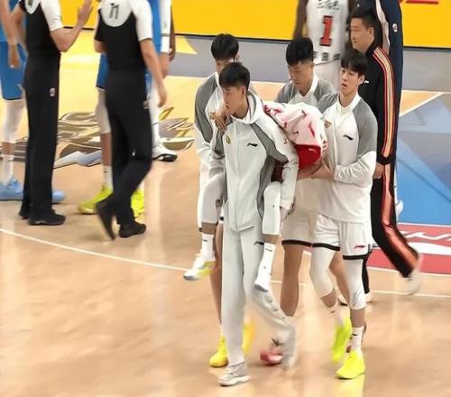 徐杰受傷是在第二節(jié)還剩4分多鐘的時(shí)候,在一次進(jìn)攻中,徐杰在籃下附近被周琦意外撞倒,當(dāng)時(shí)應(yīng)該是頂?shù)搅讼ドw,壓到了腳踝,這直接導(dǎo)致徐杰受傷,倒地不起??吹叫旖苁軅?,趙睿和胡明軒第一時(shí)間過(guò)去查看,趙睿更是呼叫隊(duì)友進(jìn)場(chǎng),很快擔(dān)架車和醫(yī)生進(jìn)場(chǎng),隨著徐杰頭蓋毛巾,被隊(duì)友背離球館。