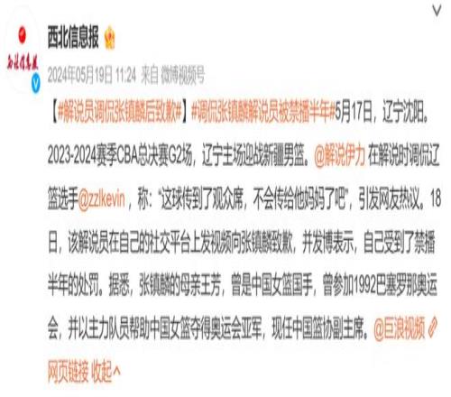 實際上這種事情也不止發(fā)生過一次,之前還是咪咕承接CBA網(wǎng)絡(luò)直播的時候,也有一些解說嘲諷張鎮(zhèn)麟全靠他的母親王芳上位,因此被遼寧球迷投訴并且丟了工作。
