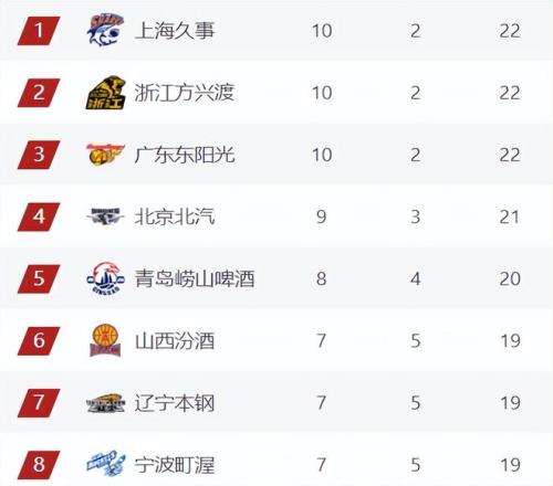 前8排名目前呈現(xiàn)一個(gè)3-2-3格局,前三名同積22分領(lǐng)跑,第4-5名夾在中間,第4的北京落后前三一個(gè)身位,第5的青島領(lǐng)先第6一個(gè)身位,北京上不去青島也下不來,第6-8同積19分,第9-12也是同積18分,第8的寧波領(lǐng)先第9-12名一個(gè)身位,不過這種局面也不會(huì)維持太久。