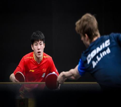 溫瑞博和安德斯·林德此前沒有交鋒記錄,畢竟他剛打成年級別的比賽不久。溫瑞博在國乒選手中屬于高個子,護臺面積比較大。這場比賽的第一局,兩人打成2平之后,林德連得3分取得領先,就此他掌握主動權,最終11比7拿下第一局。