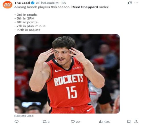 在本賽季替補(bǔ)球員中,謝潑德?lián)寯嗟谌?、三分命中個(gè)數(shù)第五、得分第六、正負(fù)值第七、助攻第十。本賽季謝潑德很有希望競爭最佳第六人,那么謝潑德未來是不是有希望復(fù)刻詹姆斯-哈登的路徑?
