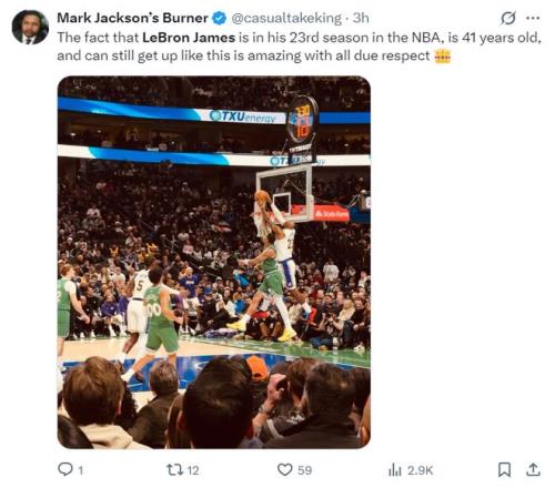 美媒寫道:勒布朗已經(jīng)41歲在這個(gè)聯(lián)盟征戰(zhàn)23載,他還能這樣飛起來(lái)真的令人驚嘆不已,我真的要向他致敬(皇冠)。
